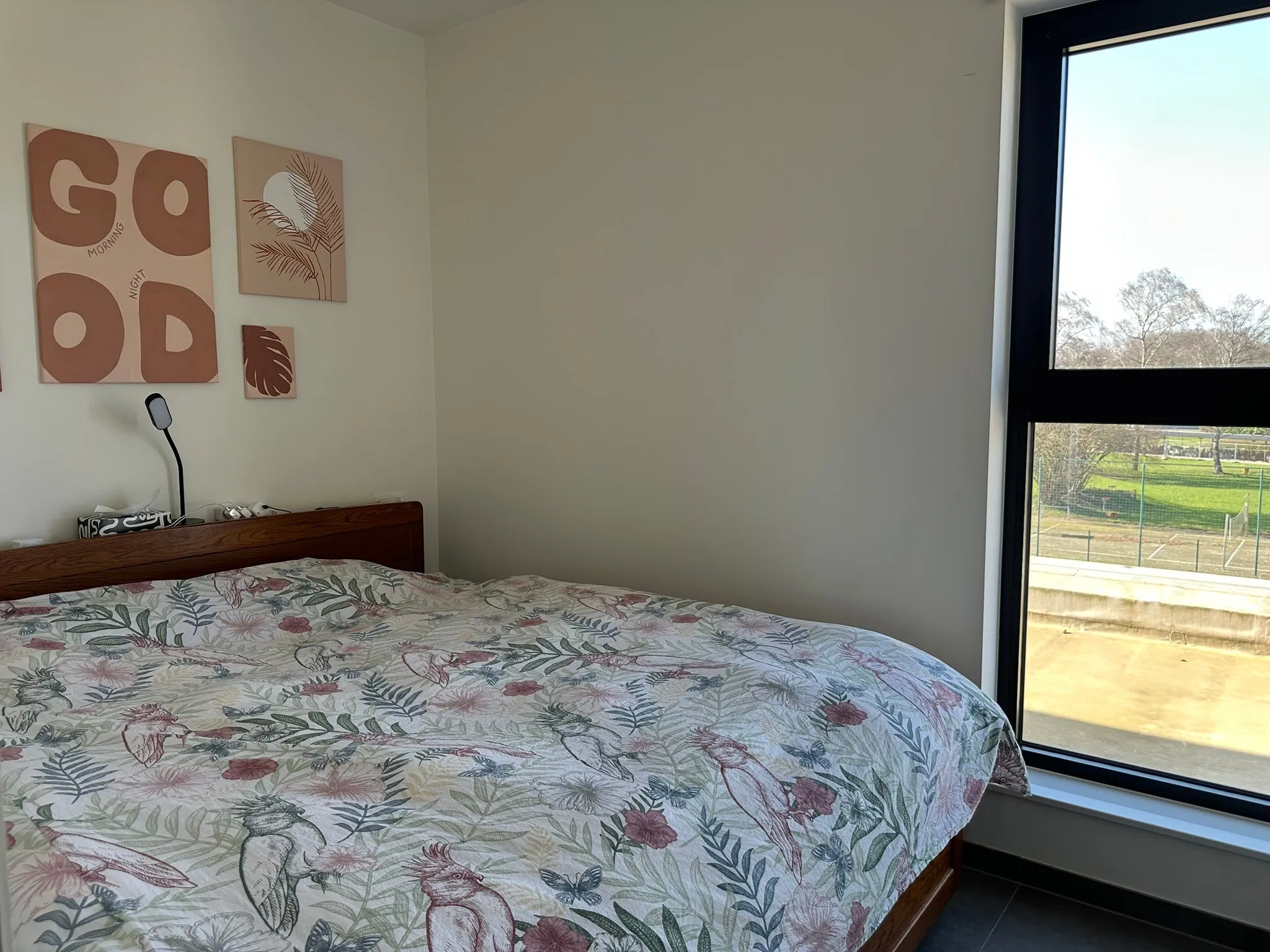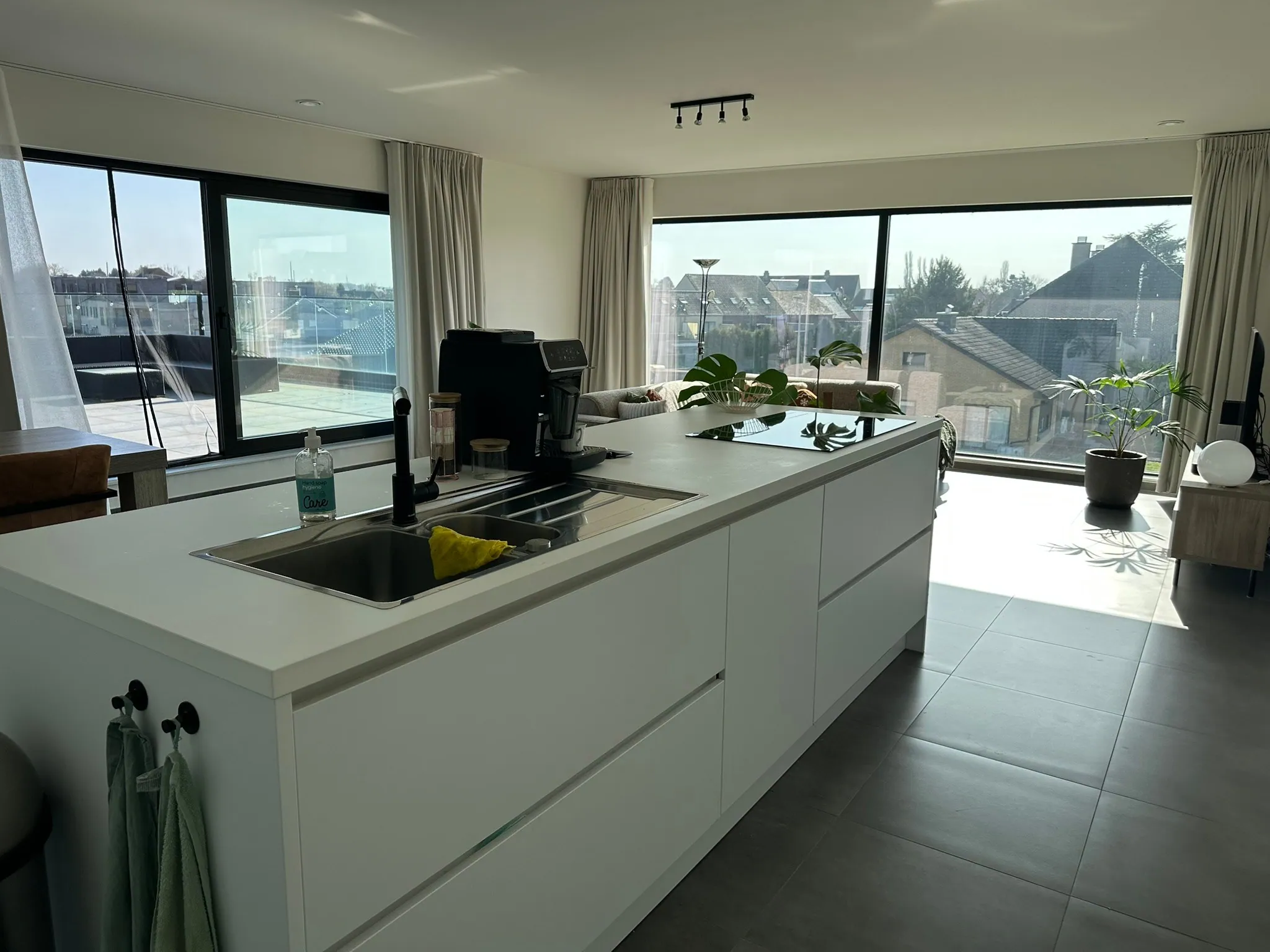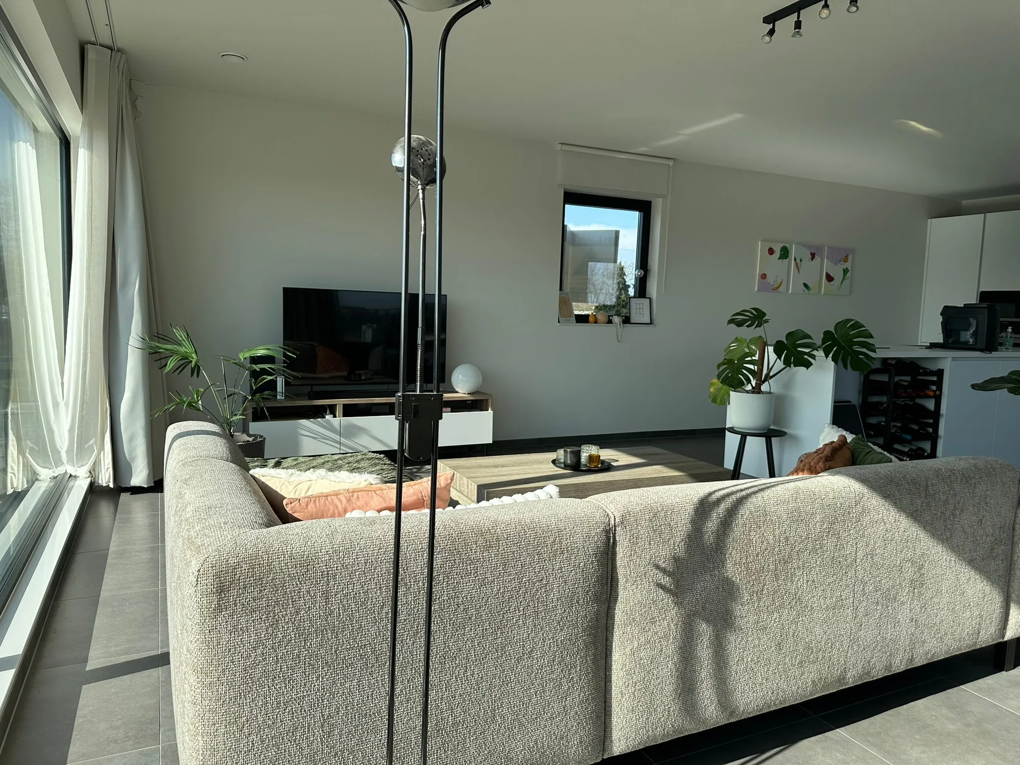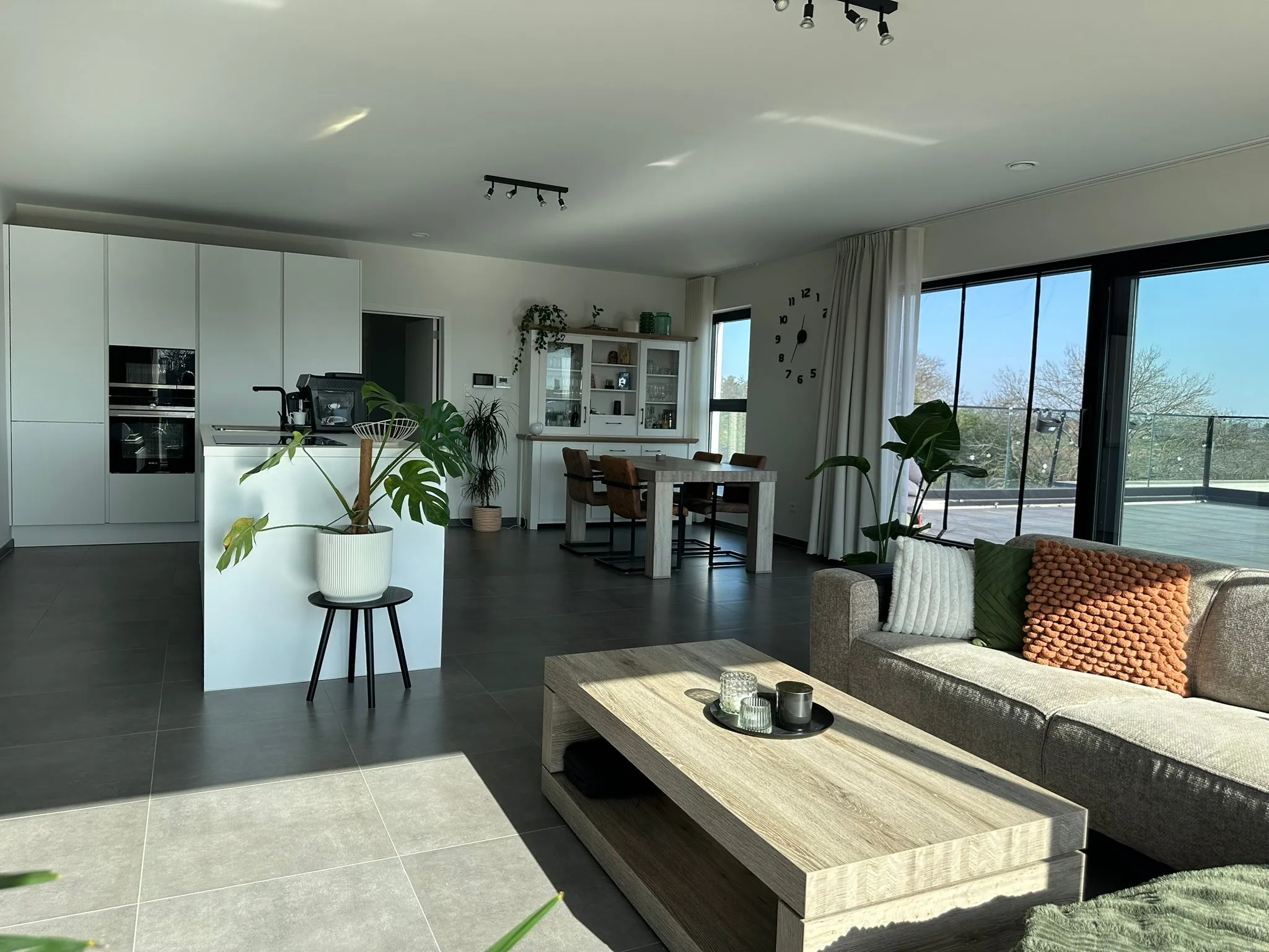 Eigentijds appartement met 2 slaapkamers en groot zonnig terras. Achtergelegen privé parkeerplaats, privé kelderberging.