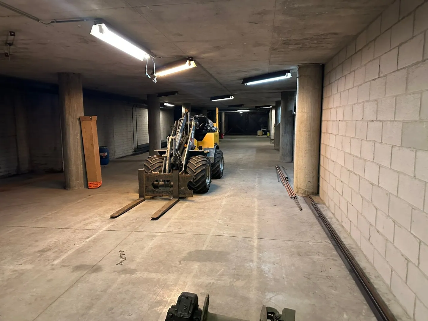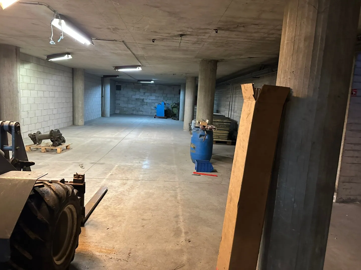 Bergruimte van 192 m². Hoogte: 2,35 m. Toegang via Reinpadstraat. De bergruimte is toegankelijk met auto en aanhangwagen. Voor het lossen en laden van een bestelwagen/vrachtwagen is een transpallet beschikbaar. Stroom is inbegrepen in de huurprijs.