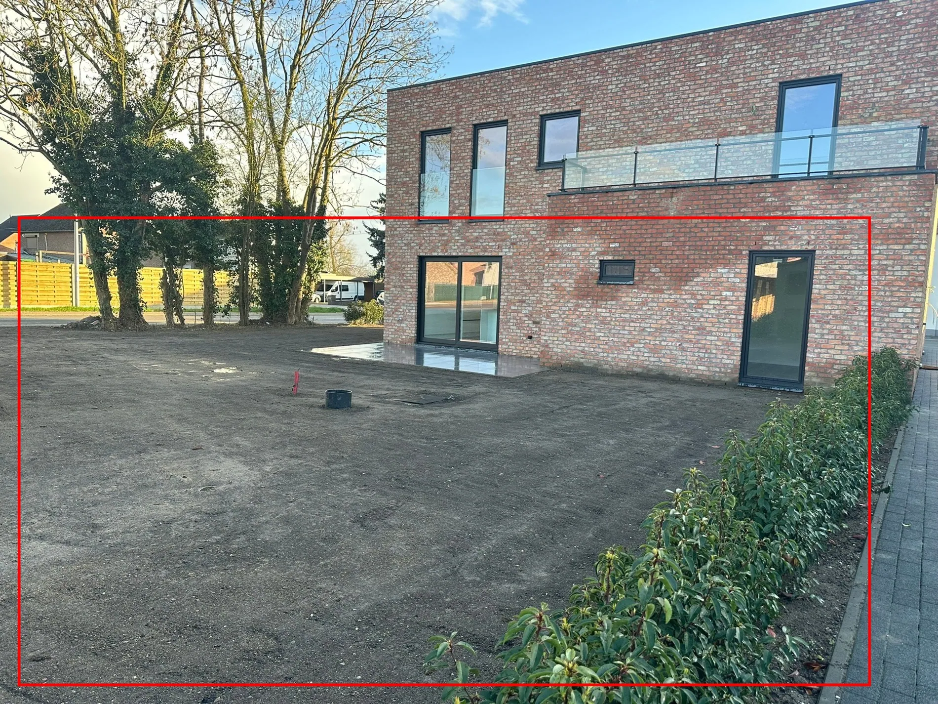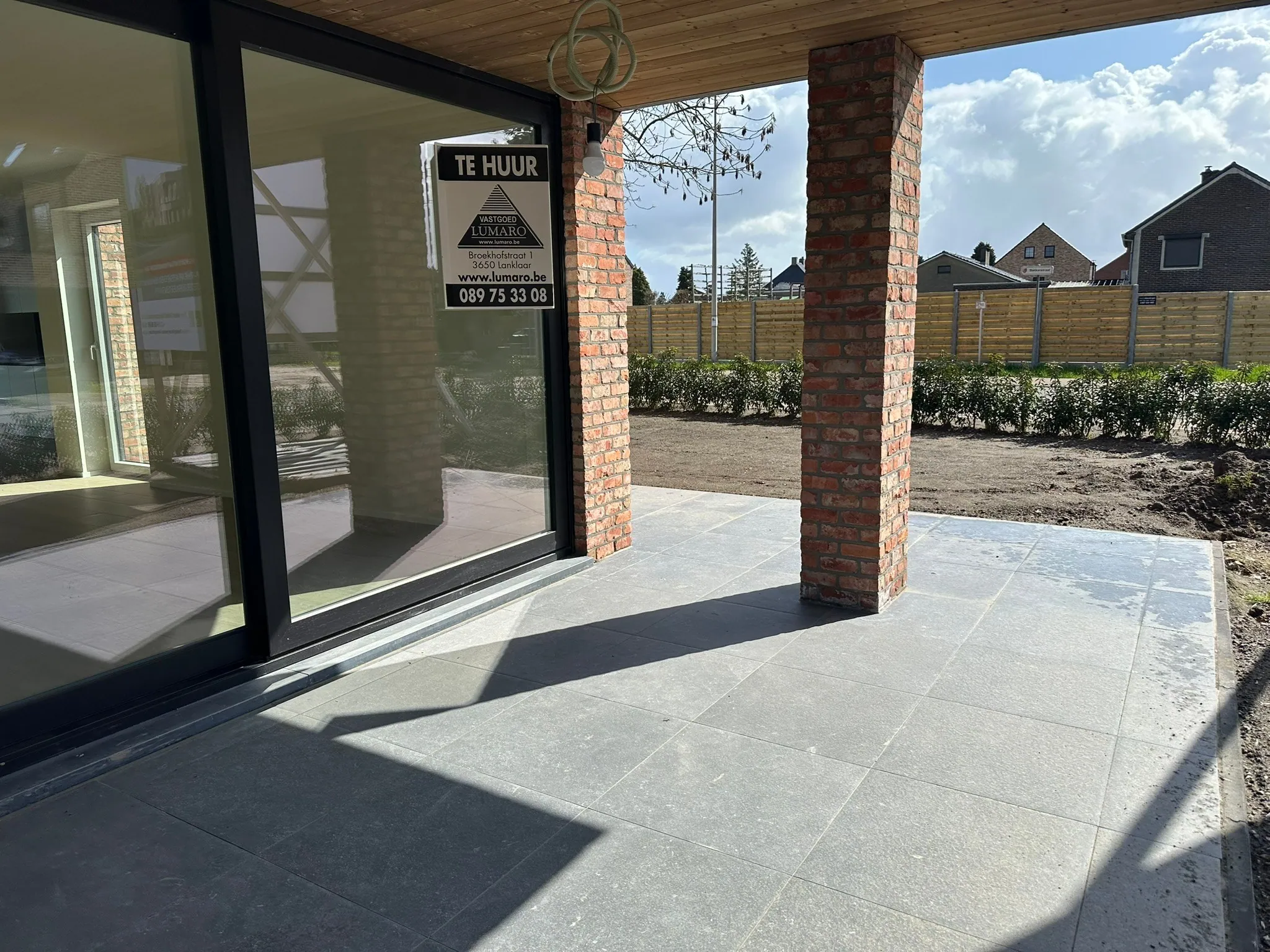 - Terras achteraan: tegels - toegang vanuit de keuken via schuifpui – toegang tot het gazon.