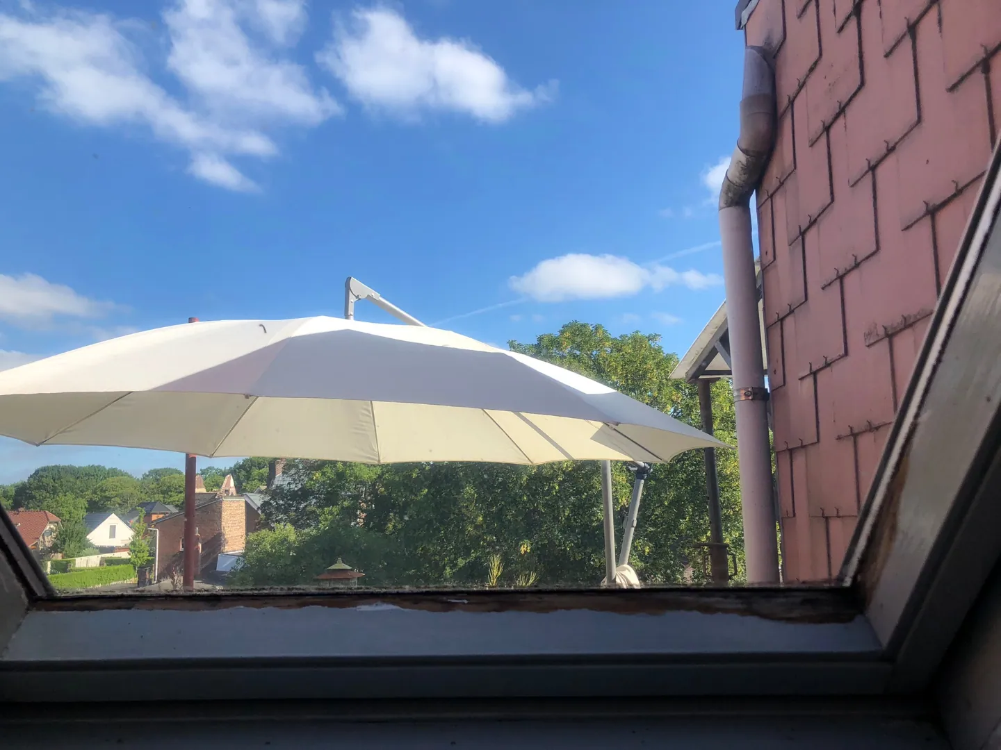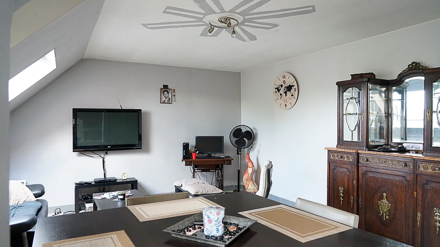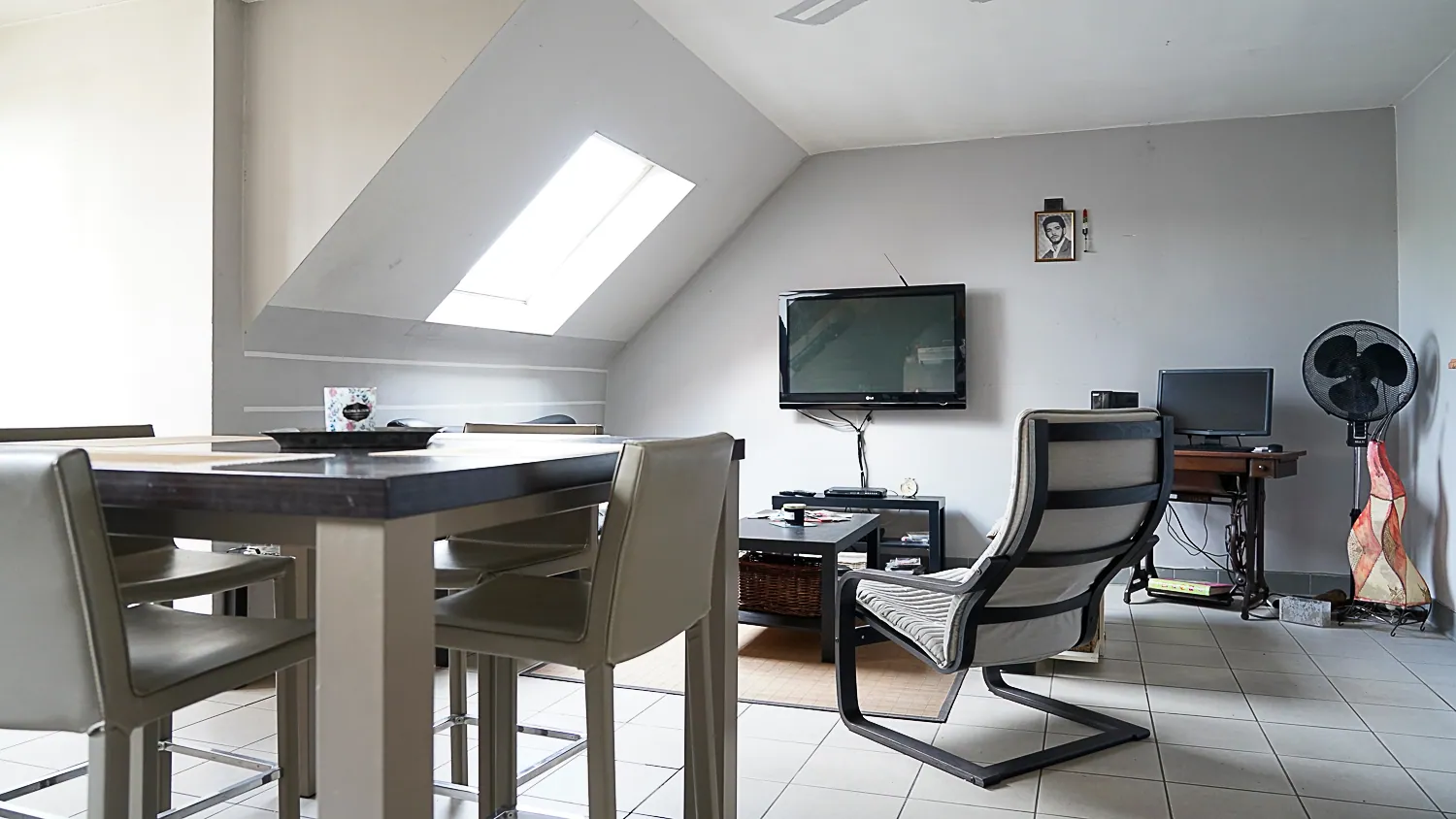 In het appartement zijn PVC ramen met dubbel glas. De badkamer heeft een Velux.