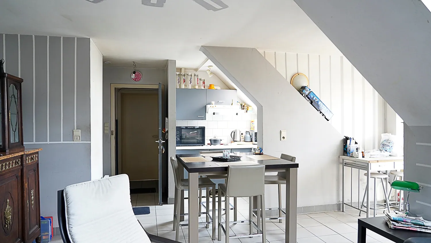 Temidden de Pauwengraaf, boven ‘Oma’s Frit’ ligt het dakappartement op de 2de verdieping.