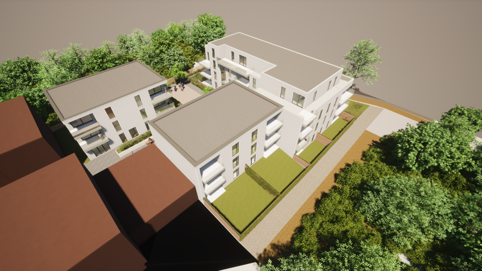 Het woonerf wordt gebouwd in 3 woonblokken, met in totaal 4 afzonderlijke ingangen en bijgevolg 4 afzonderlijke liften. De gebouwen situeren zich rond een centrale binnentuin van waaruit alle appartementen bereikbaar zijn.