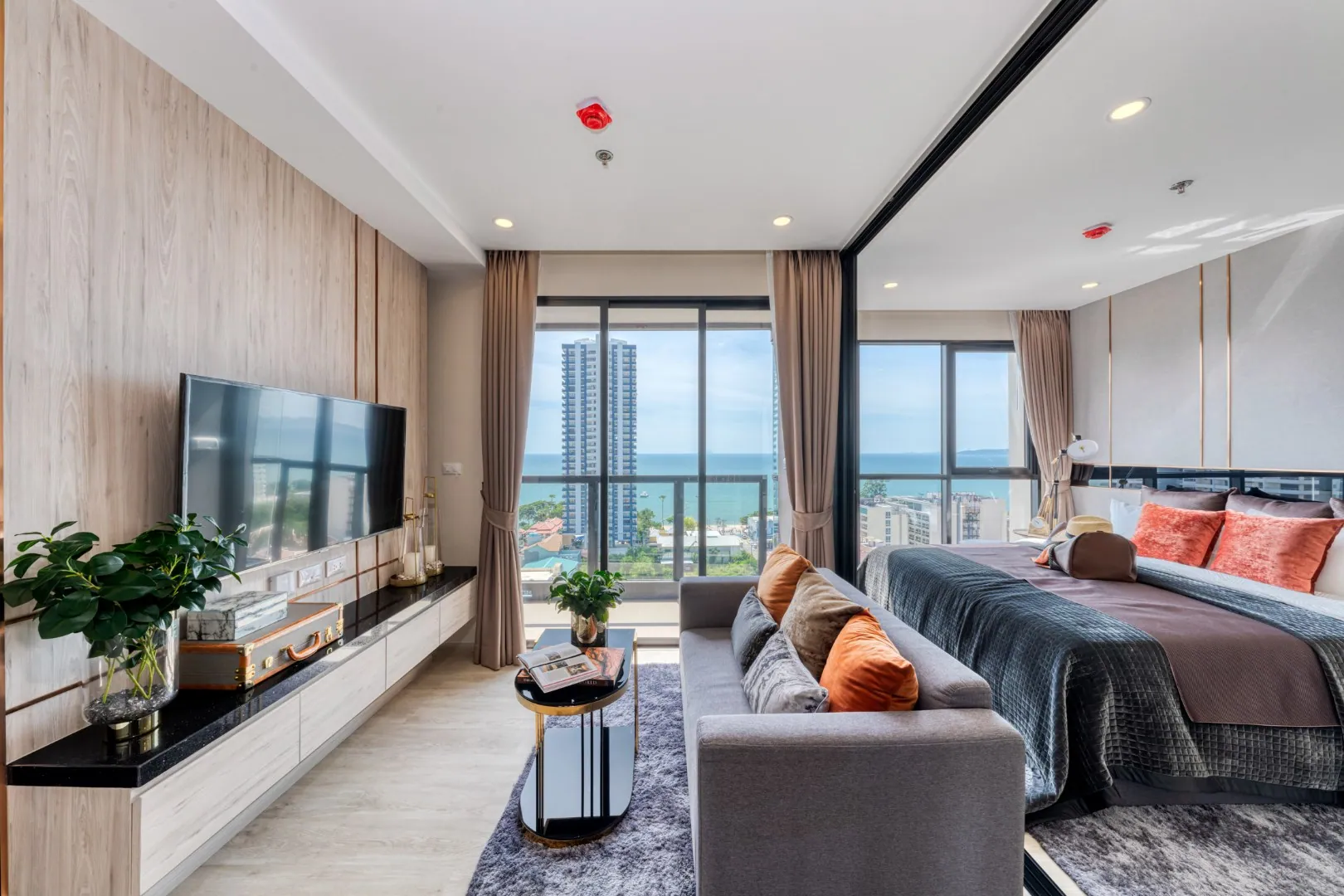 6e verdieping met gedeeltelijk uitzicht op zee en een prachtig uitzicht op de groene Pratamnak-heuvel waar je 's nachts prachtige sterren kunt zien.