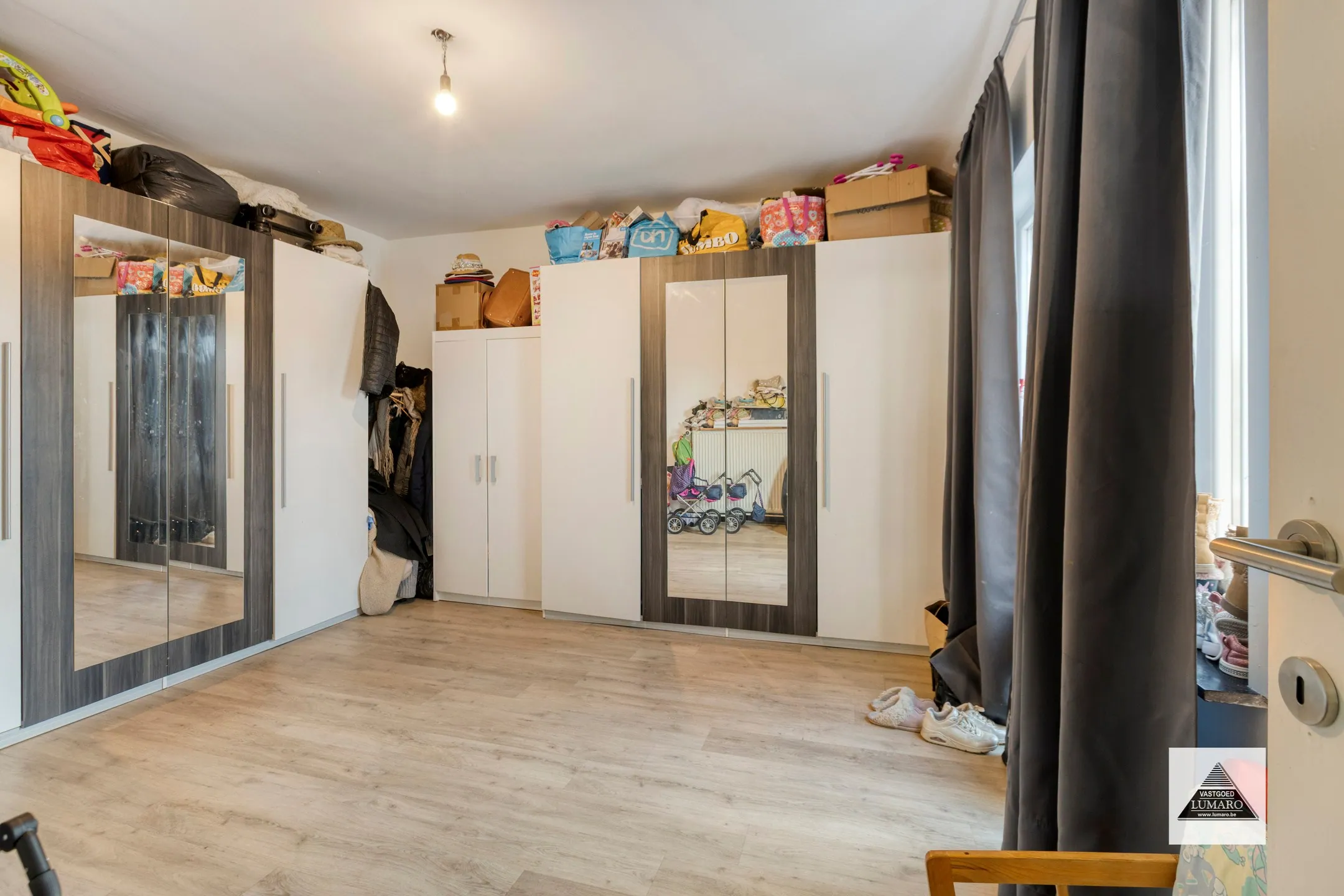 - Slaapkamer 1: (4,06 m x 3,98 m = 16,16 m²) – laminaat vloer – slaapkamer gelegen aan de voorzijde van het gebouw – rolluiken aanwezig.