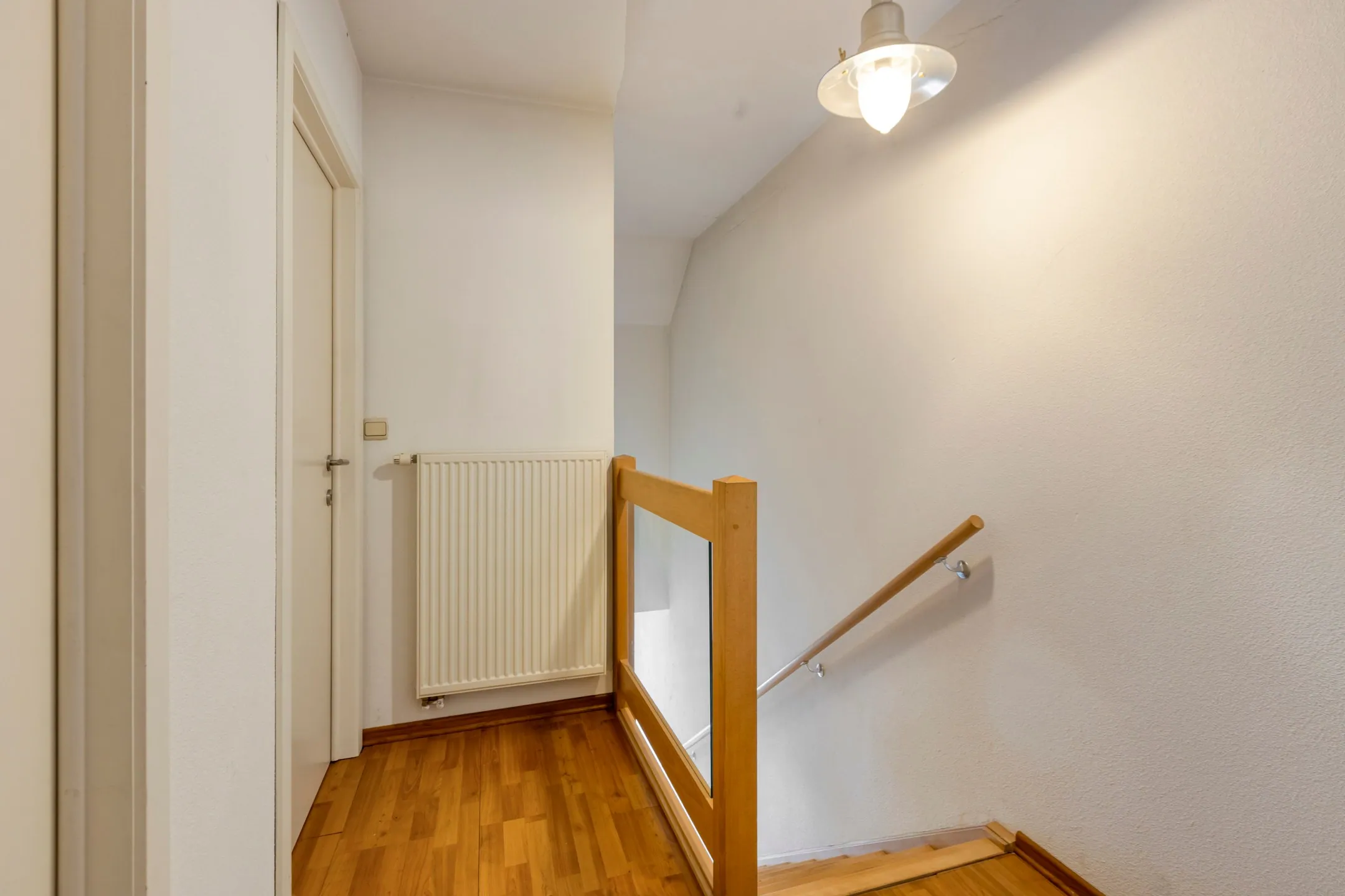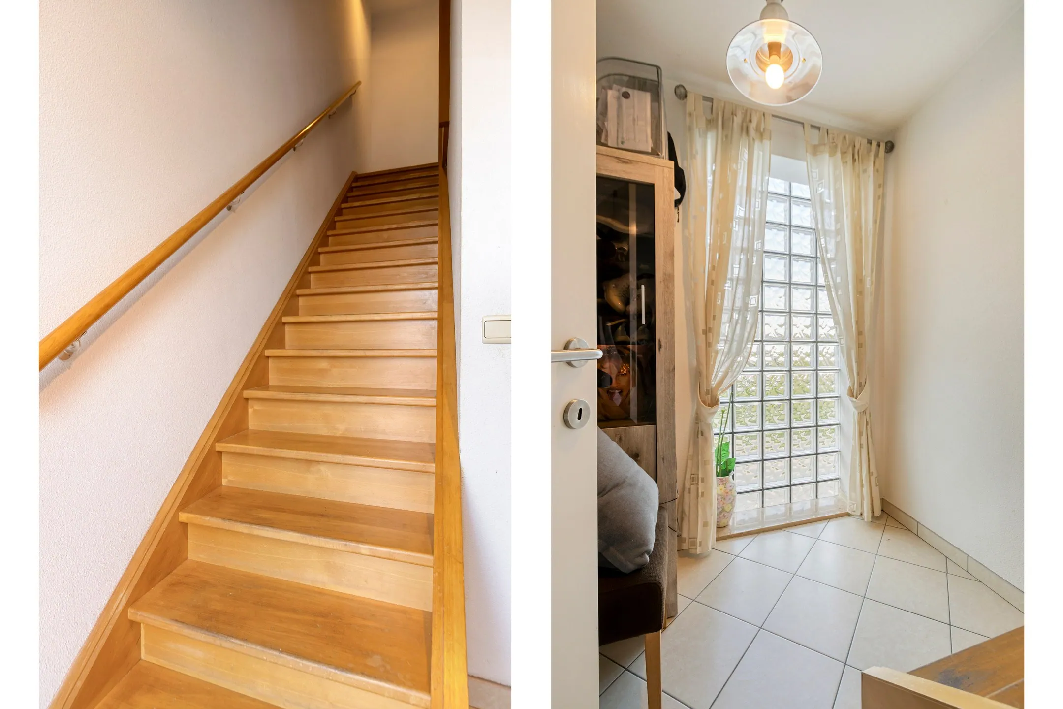 - Hal met beukenhouten trap naar de slaapverdieping.