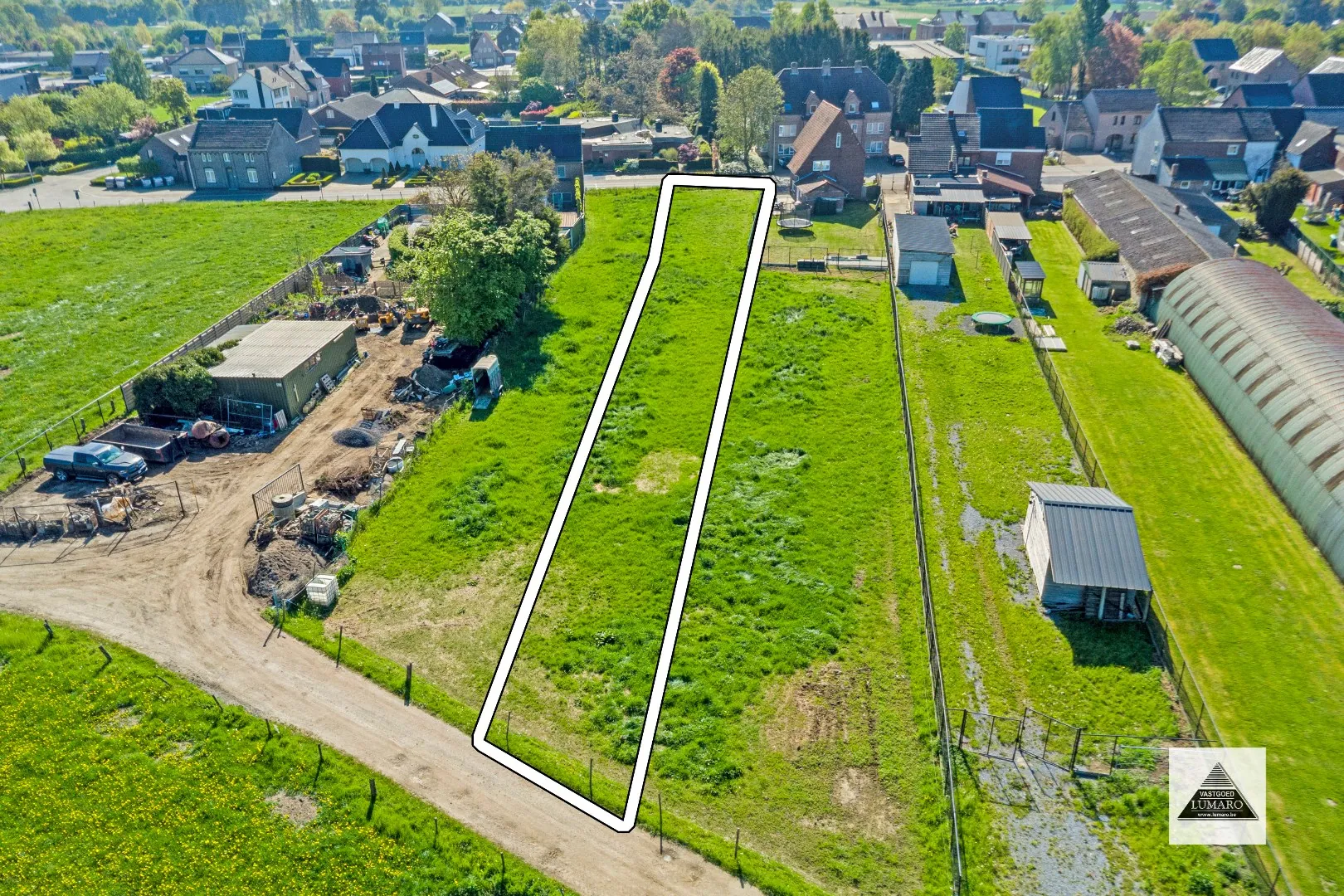 Zeer interessant: het perceel paalt achteraan aan een landweg, waardoor men altijd langs de achterzijde het perceel kan bereiken.