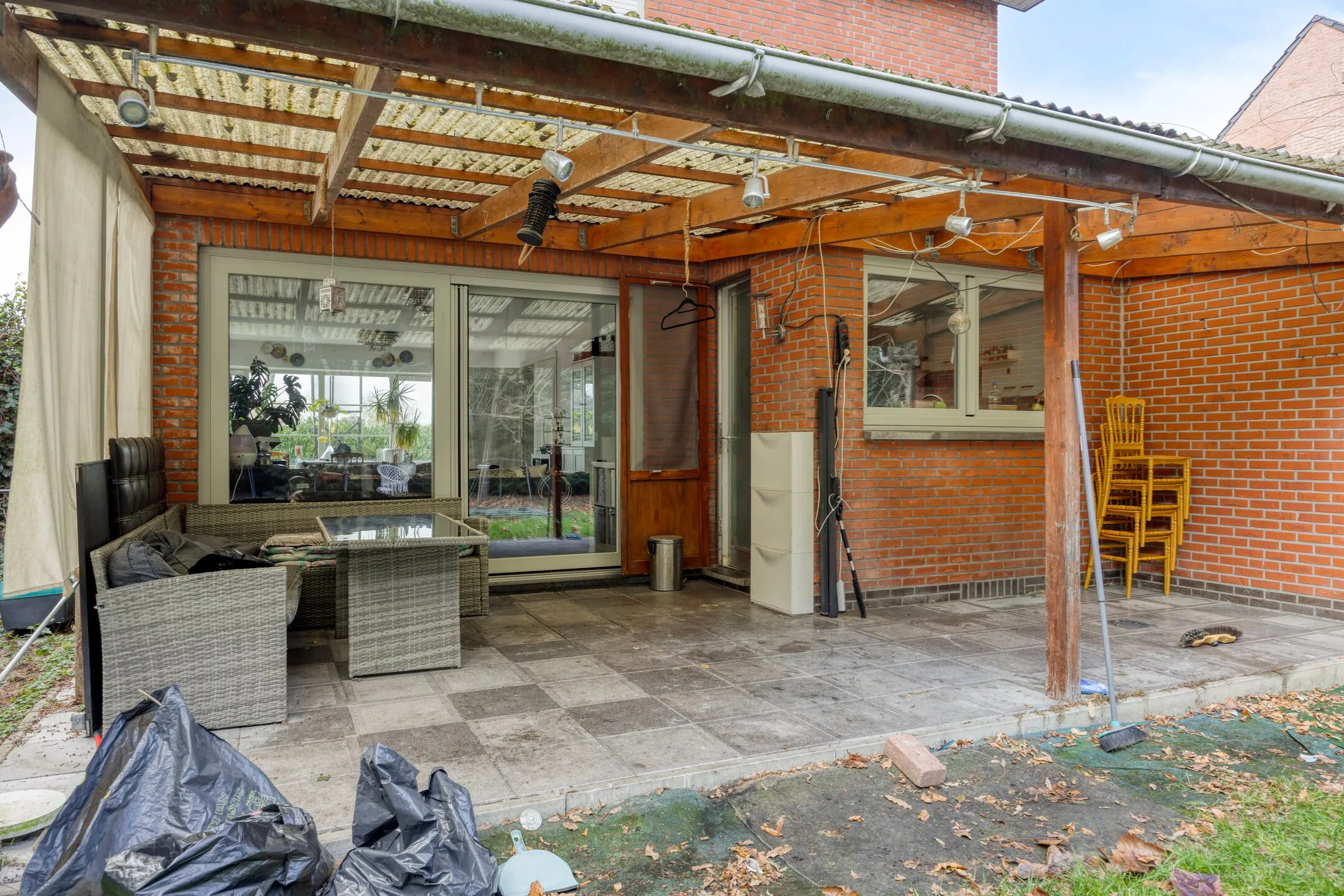 - - Overkapte terras (7,00 m breed x 3,50 m / 2,00 m = 20 m²) – tegelvloer