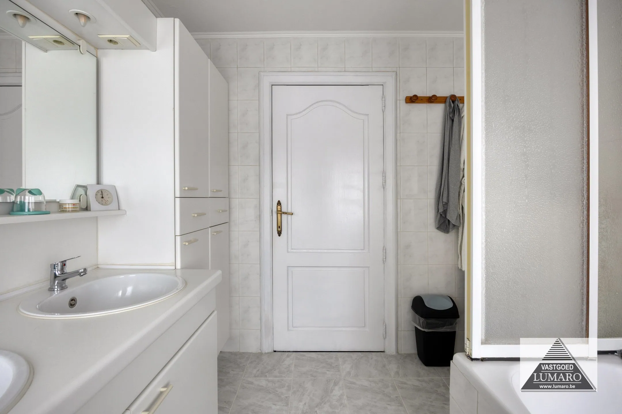 - Badkamer: (2,30 m x 2,80 m = 6,44 m²) – ingericht met ligbad met douchescherm – badkamermeubel met 2 wastafels - buitenraam.