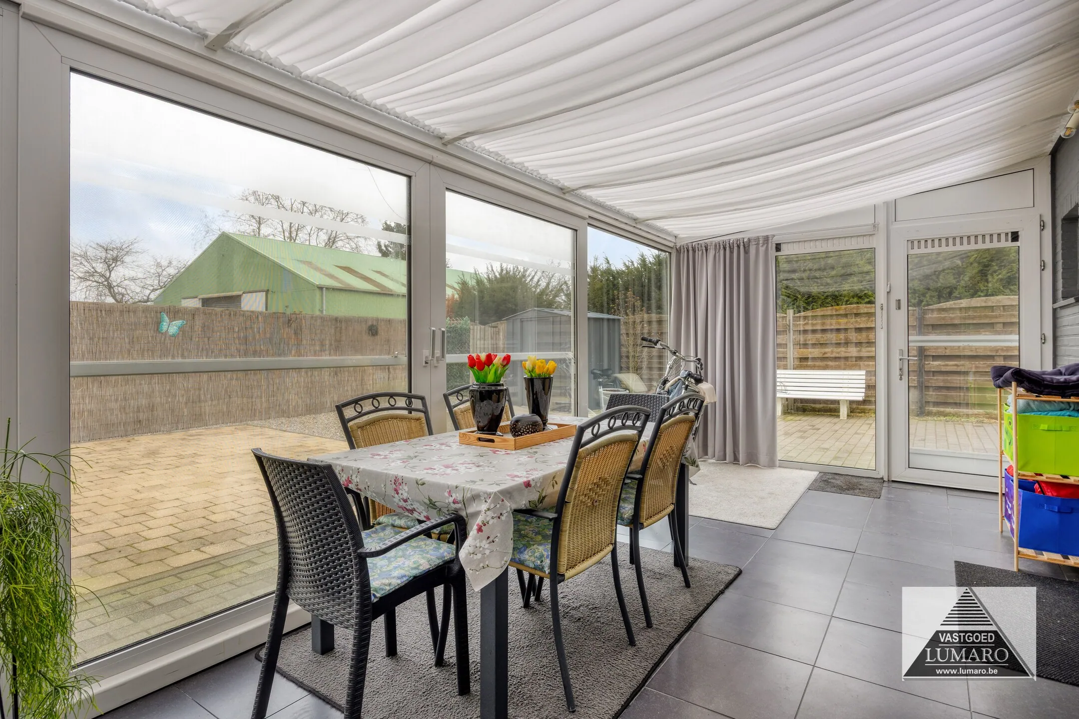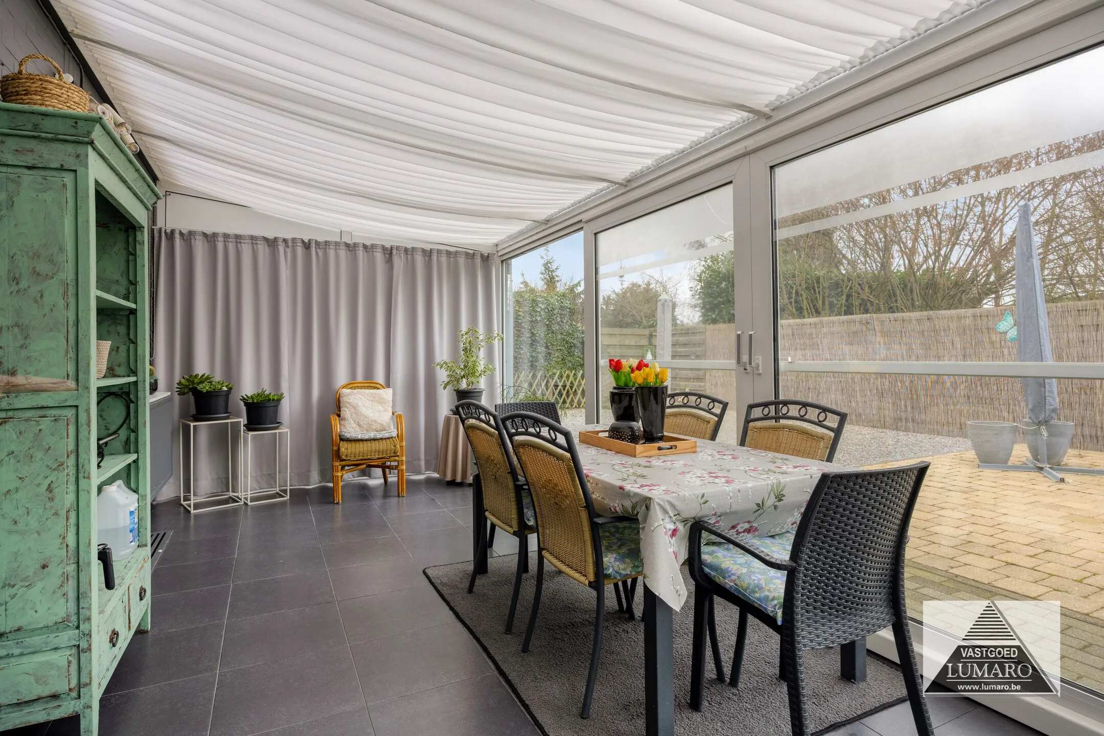 - Veranda: achteraan aan de woning paalt een veranda met schuifraam en loopdeur – verwarming aanwezig.