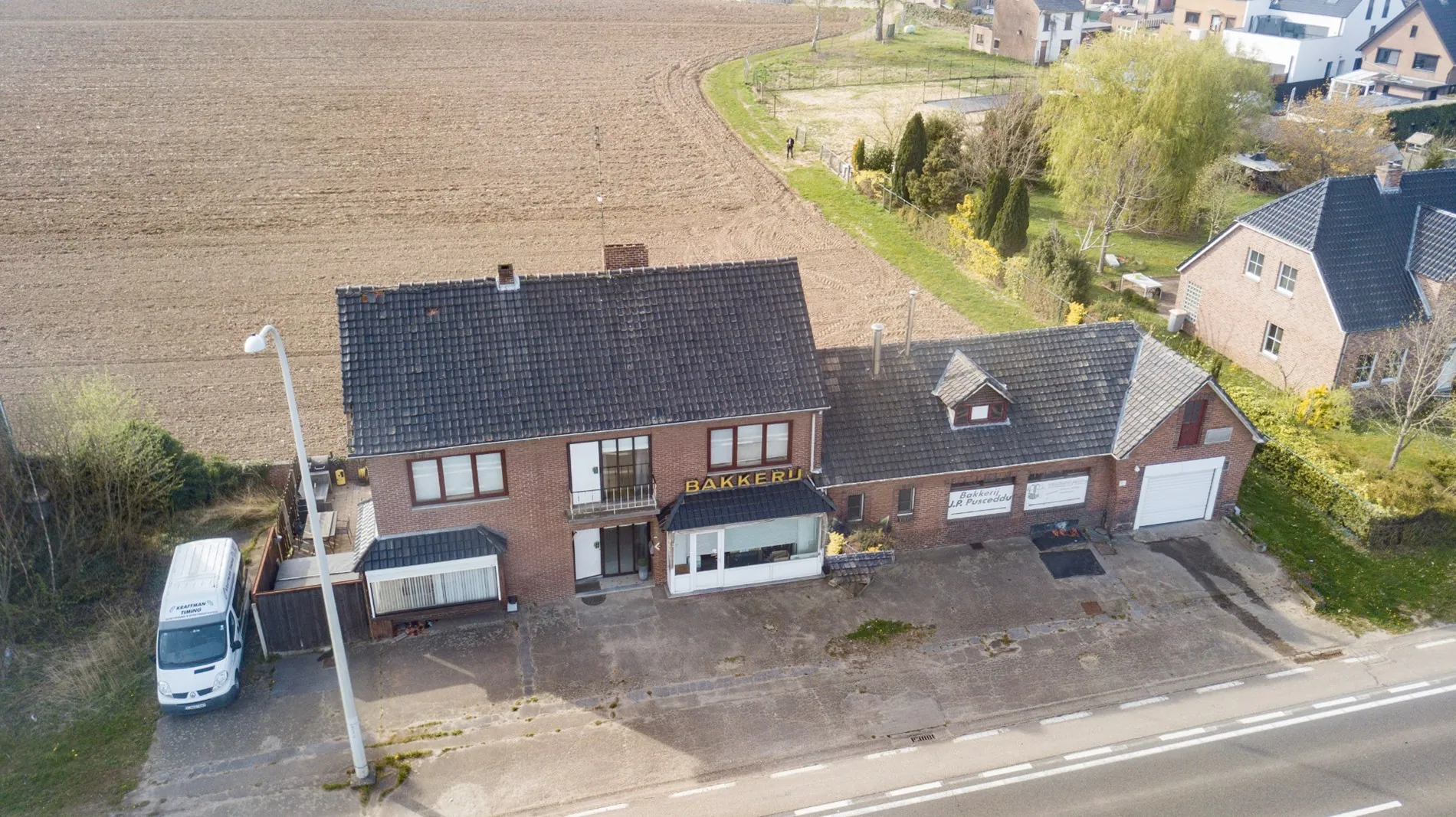 - Bureel / praktijkruimte/berging: (7,00 m x 3,85 m = 27,00 m²) – hier was voorheen de verkoopruimte van de bakkerij -