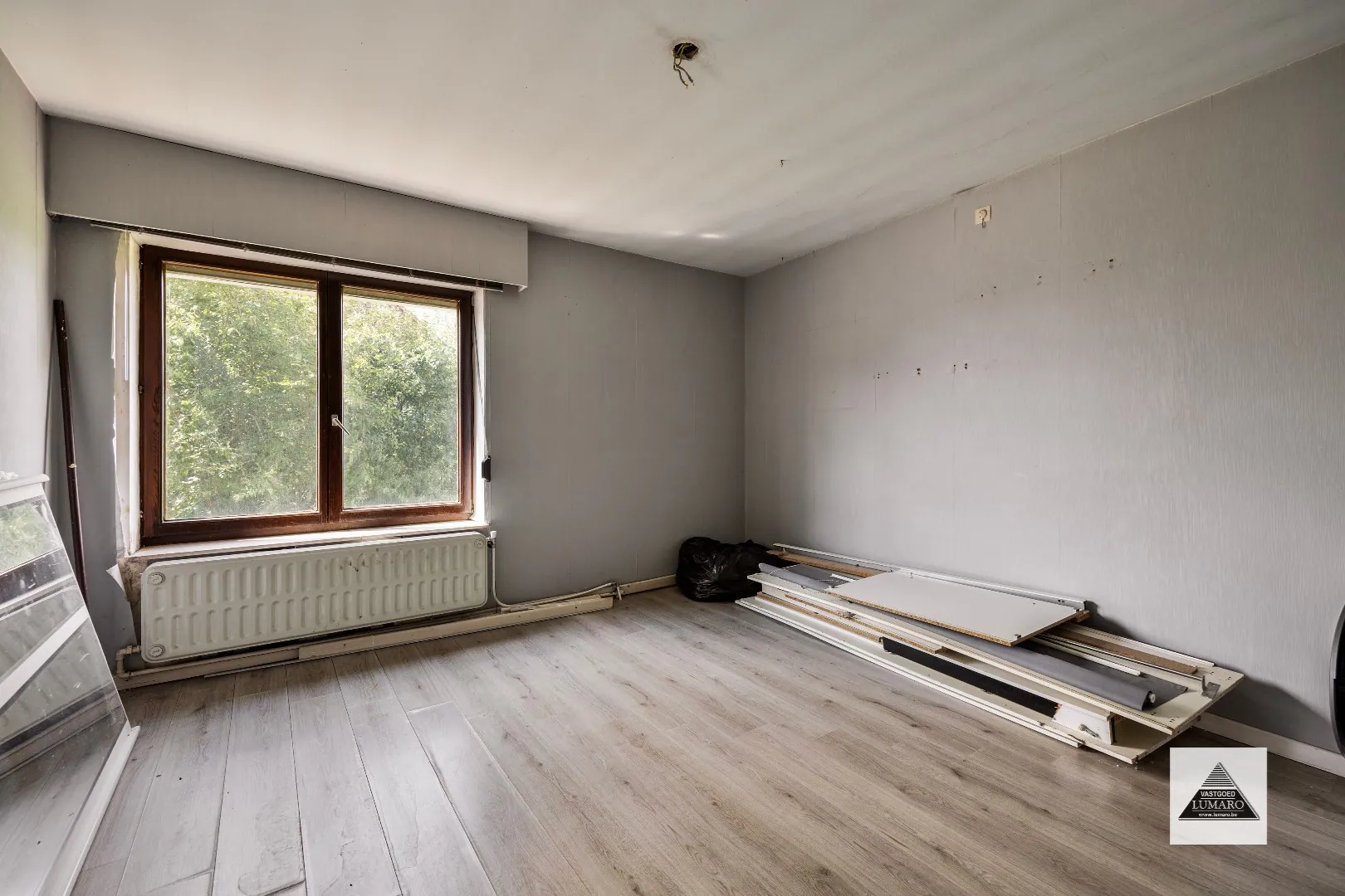 - Slaapkamer 4: (4,10 m x 3,50 m = 14,35 m²) – laminaatvloer.