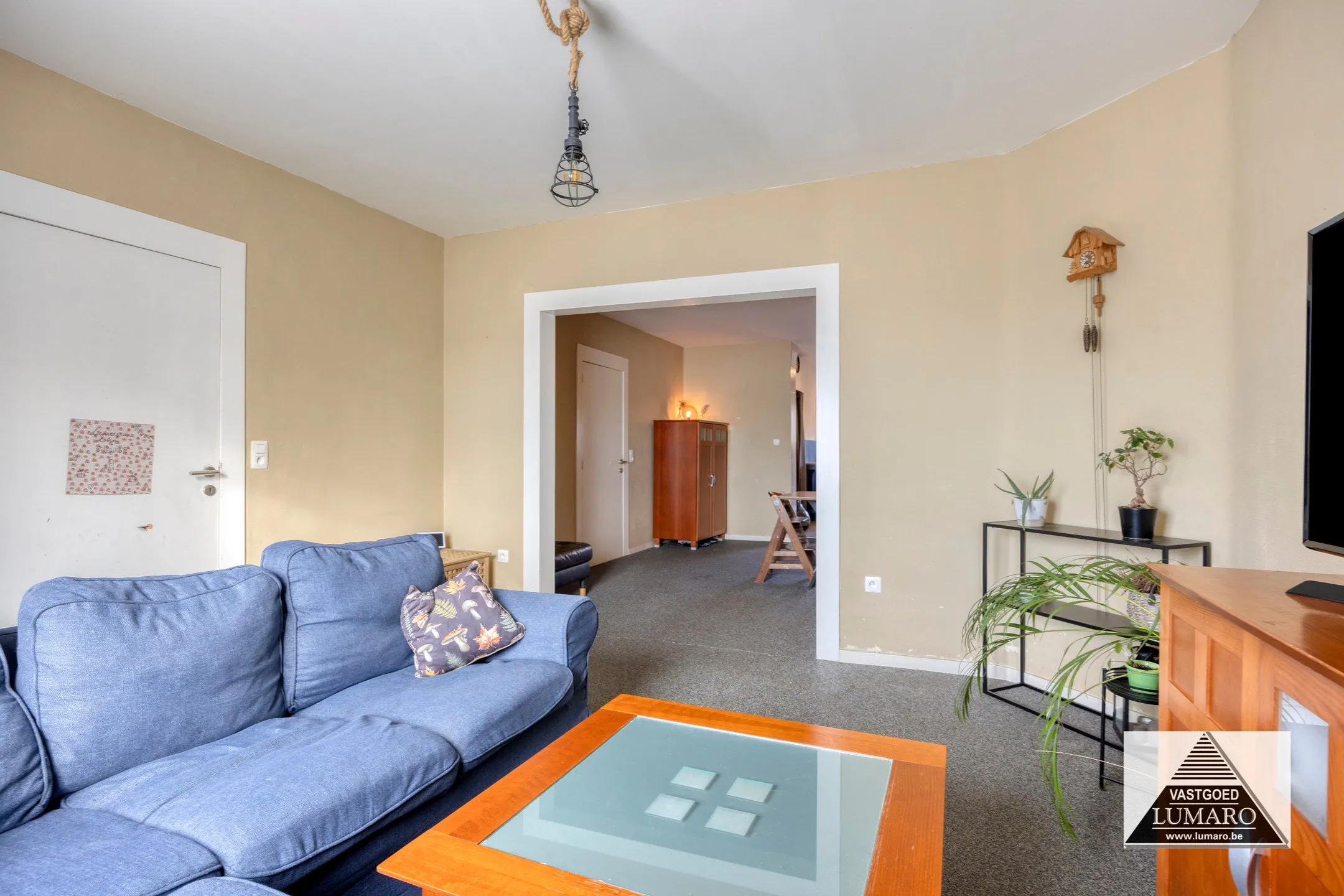 - Woonkamer: (4,21m x 8,51m = 35,83 m²) - steentapijt – de woonkamer ... is lichtjes opgedeeld als tv-hoek en aparte eethoek.