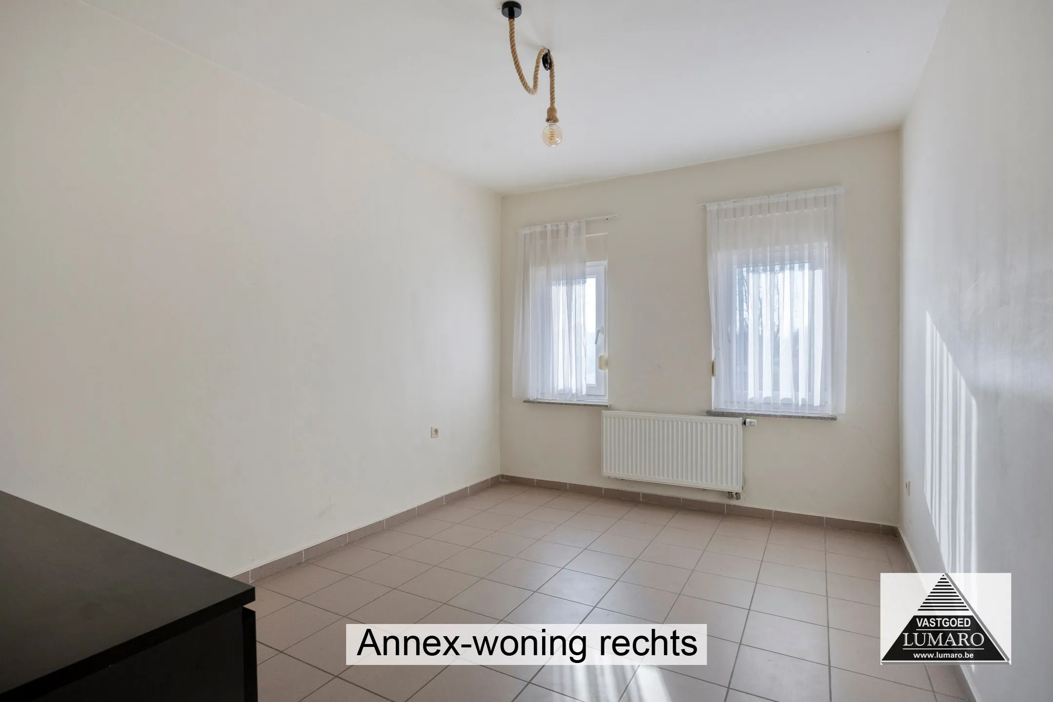 - Slaapkamer 2: (3,65m x 3,94m = 14,38 m²) - tegelvloer.