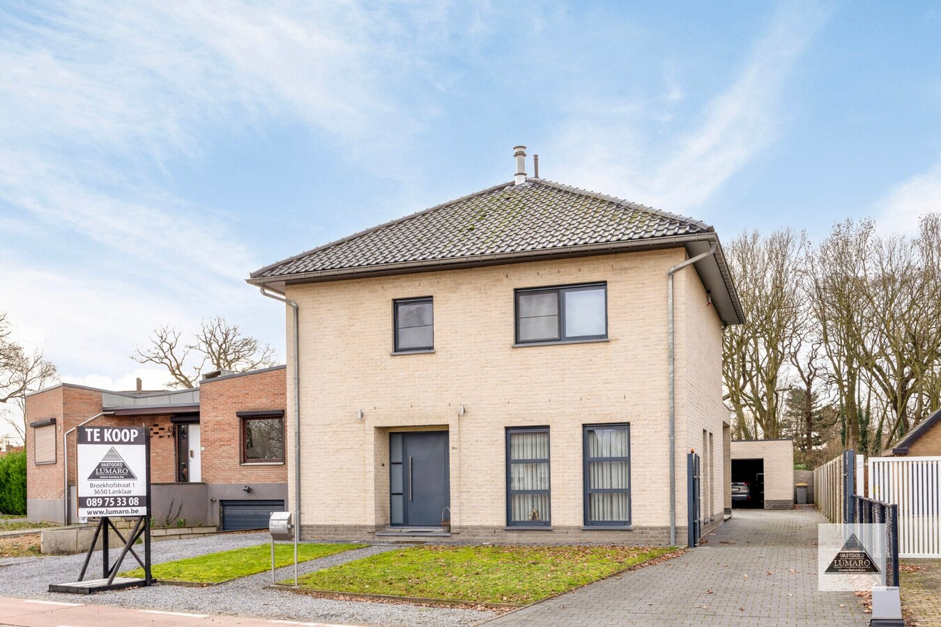 Het groot overdekt terras met zonneluifel en een zonnig gazon, nodigen uit voor een gezellige barbecue, een speelparadijs voor uw (klein)kinderen, of aangename buitenruimte voor uw huisdier. De tuin is volledig omheind. De ... automatische toegangspoort rechts , en de garage poort worden bediend met een afstandsbediening, of met het klavier. De poort links wordt manueel bediend, oprit links ligt in kiezel.