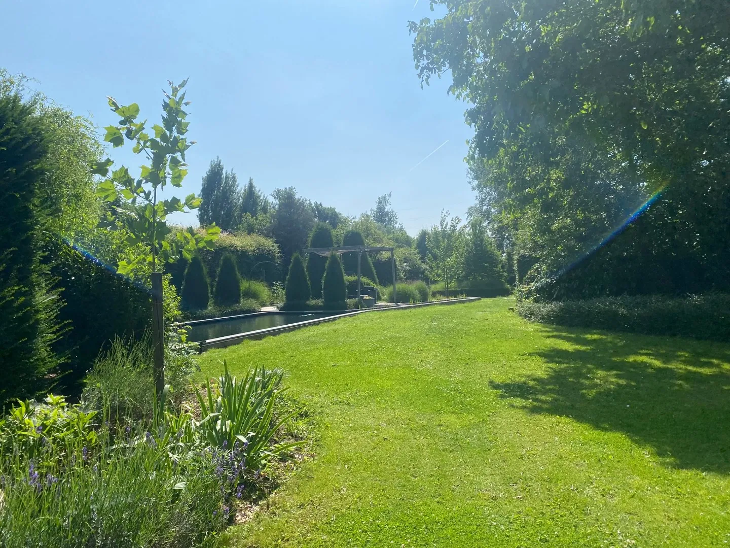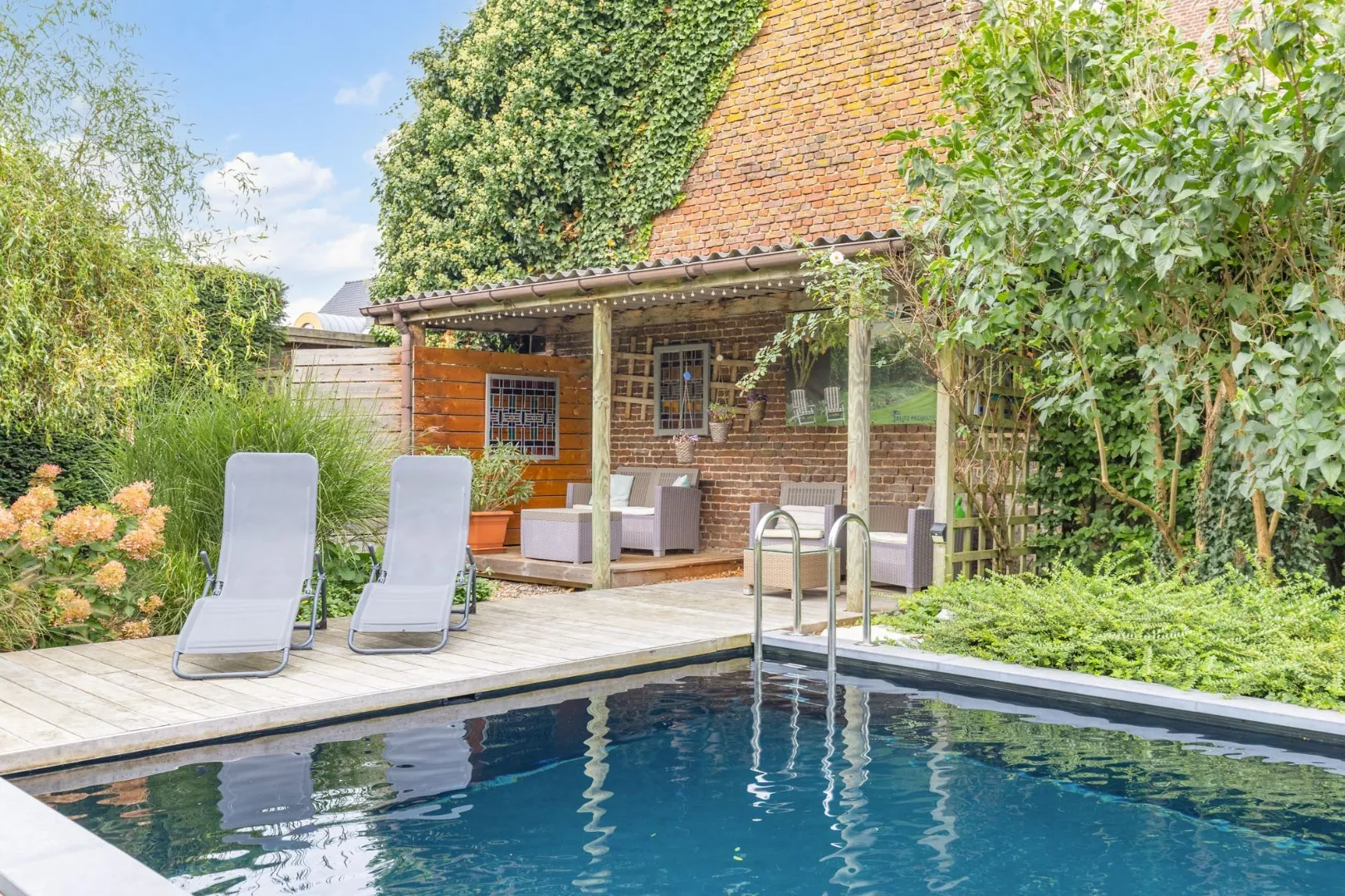 Volledige omheining en een hoge beukenhaag garanderen absolute privacy voor bewoners en gasten.