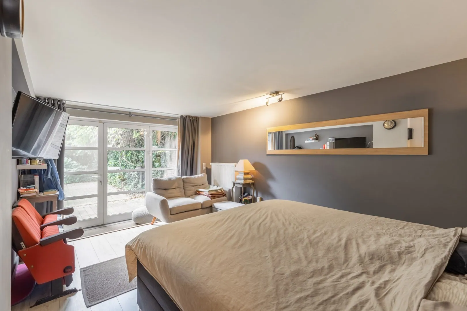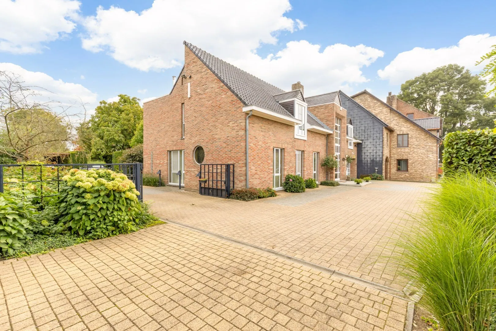 Het hoofdgebouw beschikt over 6 ruime slaapkamers met badkamer, lichtrijke leefruimtes met tuincontact en de mogelijkheid tot volledig gelijkvloers wonen.