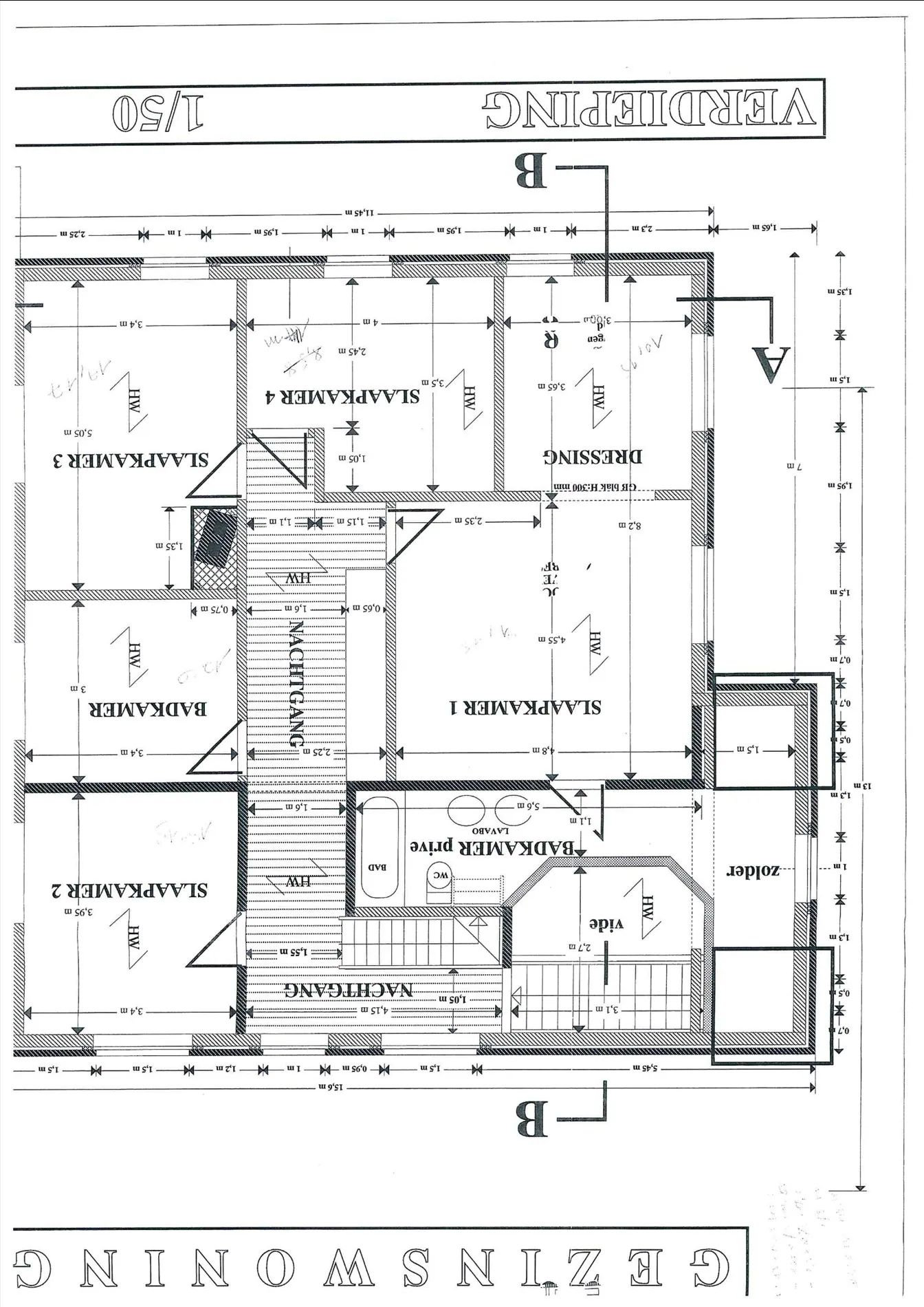ZOLDER boven de zolder : berging – nok 2,30 m hoog