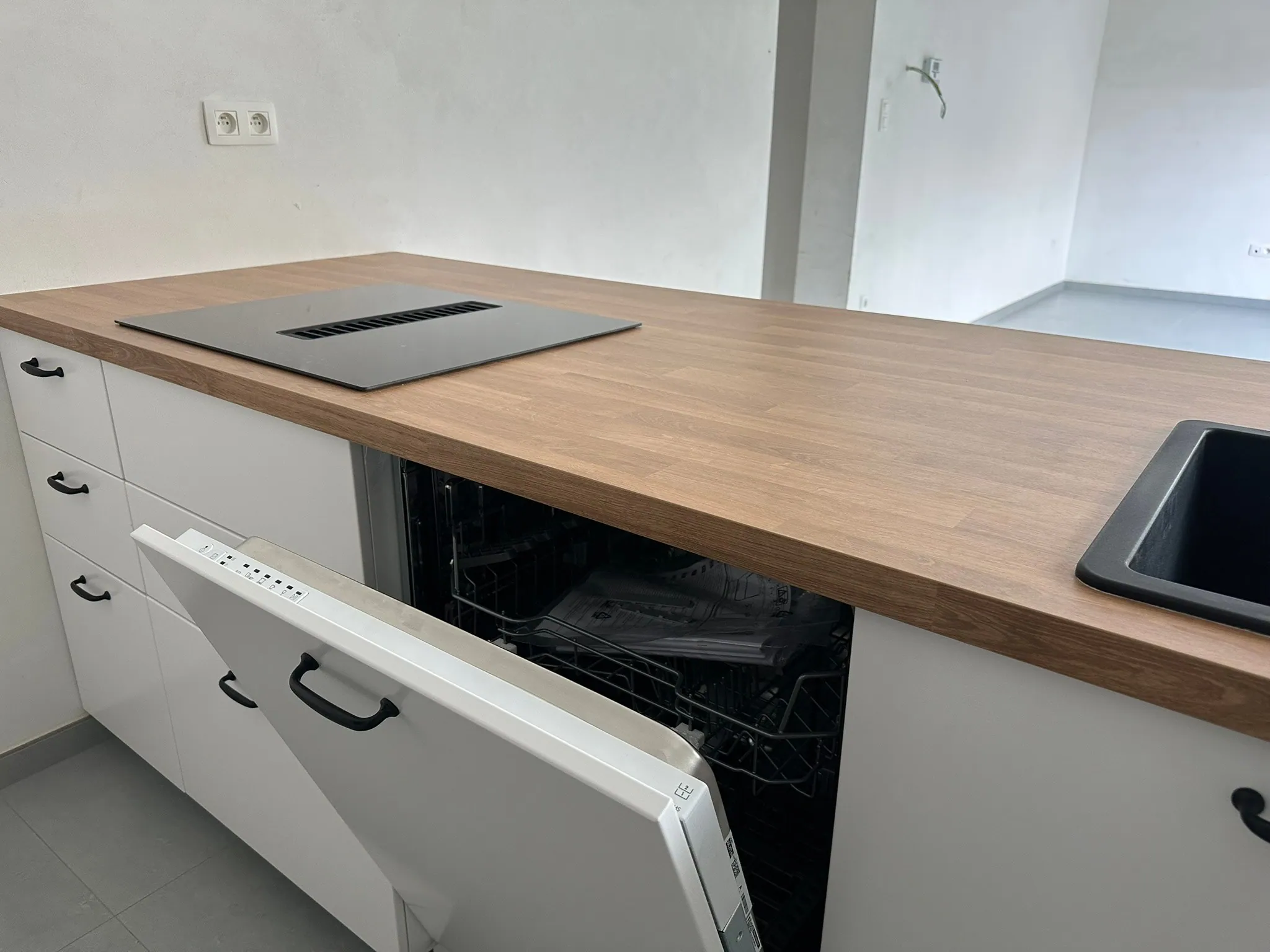 De keuken wordt eerstdaags geplaatst! Er zal een kastenwand komen en een eiland.